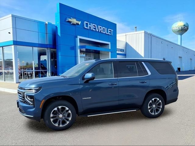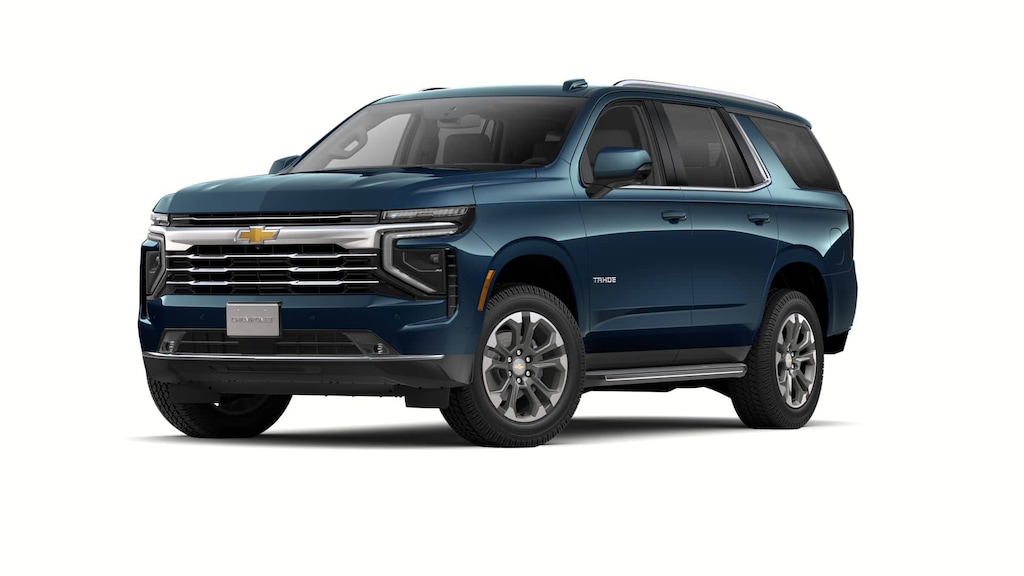 $4,819 off MSRP! Lakeshore Blue Metallic 2025 Chevrolet Tahoe LT 4WD 10-Speed Automatic with Overdrive EcoTec3 5.3L V8 4WD, Jet Black Leather.
