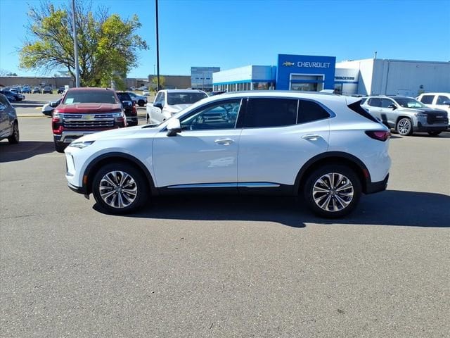 Summit White 2025 Buick Envision Preferred AWD 9-Speed Automatic 2.0L Turbocharged 3.47 Final Drive Axle Ratio, 30 Diagonal LCD Display, 4-Wheel Disc Brakes, 9 Speakers, ABS brakes, Air Conditioning, Alloy wheels, AM/FM radio: SiriusXM, Auto High-beam Headlights, Auto-dimming door mirrors, Auto-dimming Rear-View mirror, Automatic temperature control, Bose Premium 9-Speaker Audio System Feature, Brake assist, Bumpers: body-color, Compass, Delay-off headlights, Driver 4-Way Power Lumbar Seat Adjuster, Driver 8-Way Power Seat Adjuster, Driver door bin, Driver vanity mirror, Dual front impact airbags, Dual front side impact airbags, Electronic Stability Control, Emergency communication system: OnStar and Buick connected services capable, Exterior Parking Camera Rear, Four wheel independent suspension, Front anti-roll bar, Front Bucket Seats, Front Center Armrest, Front Passenger 6-Way Manual Seat Adjuster, Front reading lights, Fully automatic headlights, Heads-Up Display, Heated door mirrors, Illuminated entry, Knee airbag, Leather steering wheel, Low tire pressure warning, Memory seat, Navigation System, Occupant sensing airbag, Outside temperature display, Overhead airbag, Overhead console, Panic alarm, Passenger door bin, Passenger vanity mirror, Perforated Leatherette Seat Trim, Power door mirrors, Power driver seat, Power Liftgate, Power steering, Power windows, Preferred Equipment Group 1SC, Premium audio system: Buick Infotainment System, Radio data system, Radio: Infotainment Center, Rear anti-roll bar, Rear reading lights, Rear seat center armrest, Rear window defroster, Rear window wiper, Remote keyless entry, Security system, SiriusXM Trial Subscription, Speed control, Split folding rear seat, Spoiler, Steering wheel mounted audio controls, Telescoping steering wheel, Tilt steering wheel, Traction control, Trip computer, Variably intermittent wipers, Wheels: 18 Alloy w/Technical Gray, Wireless Apple CarPlay/Wireless Android Auto.