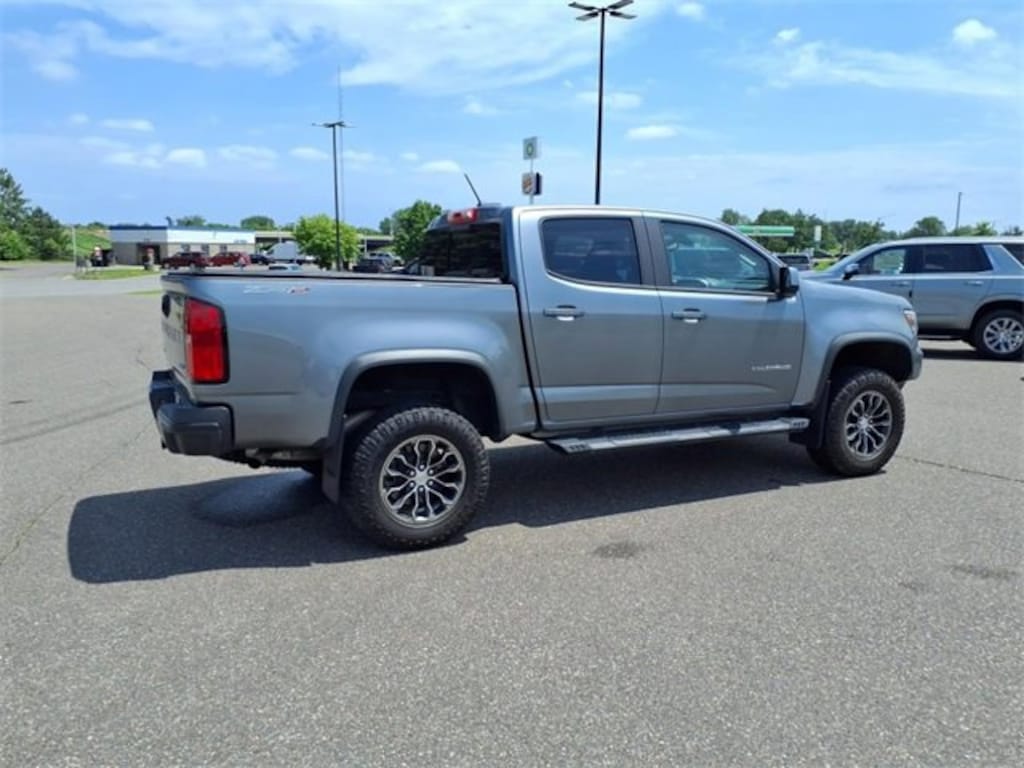 Satin Steel Metallic 2021 Chevrolet Colorado ZR2 4WD 8-Speed Automatic V6 4WD, 4-Way Power Front Passenger Seat Adjuster, 6-Speaker Audio System Feature, Air Conditioning, Apple CarPlay/Android Auto, Auto-dimming Rear-View mirror, Automatic temperature control, Black Rear Bumpers, Black Spray-On Bedliner w/Chevrolet Logo, Compass, Delay-off headlights, Driver 6-Way Power Seat Adjuster, Driver door bin, Driver-Selectable Full-Locking Front Differential, Driver-Selectable Full-Locking Rear Differential, Electronic Stability Control, Exterior Parking Camera Rear, Front Bucket Seats, Front Center Armrest, Front License Plate Kit, Fully automatic headlights, HD Radio, Heated door mirrors, Heated Driver & Front Passenger Seats, Heated front seats, Heated steering wheel, Heavy-Duty Trailering Package, Hitch Guidance, Illuminated entry, Integrated Trailer Brake Controller, Leather-Appointed Seat Trim, Outside temperature display, Panic alarm, Power door mirrors, Power Driver Lumbar Control Seat Adjuster, Power driver seat, Power Passenger Lumbar Control Seat Adjuster, Power passenger seat, Power steering, Power windows, Preferred Equipment Group 4ZR, Premium audio system: Chevrolet Infotainment 3 Plus, Radio data system, Radio: Chevrolet Infotainment 3 Plus System, Rear step bumper, Rear window defroster, Remote keyless entry, Security system, SiriusXM Radio, Speed control, Steering wheel mounted audio controls, Tow/Haul Mode, ZR2 Off-Road Package.