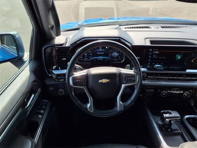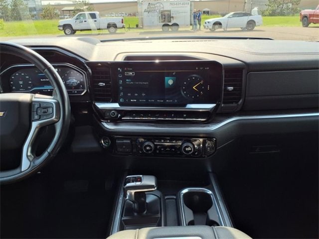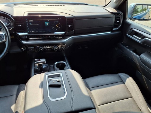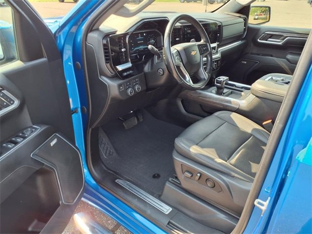 Glacier Blue Metallic 2022 Chevrolet Silverado 1500 LTZ 4WD 10-Speed Automatic 3.0L I6 10-Speed Automatic, 4WD, Jet Black Leather, 10-Way Power Driver Seat w/Lumbar, 10-Way Power Passenger Seat Adjuster w/Lumbar, 12.3 Multicolor Reconfigurable Digital Display, 120-Volt Bed Mounted Power Outlet, 120-Volt Instrument Panel Power Outlet, 15 Diagonal Multicolor Head-Up Display, 170 Amp Alternator, 2 USB Data Ports, 220 Amp Alternator, 2nd Row Heated Outboard Seats, Adaptive Cruise Control, Apple CarPlay/Android Auto, Auto-dimming door mirrors, Auto-Dimming Inside Rear-View Mirror, Auto-Locking Rear Differential, Bed View Camera, Bluetooth® For Phone, Bumpers: chrome, Chevrolet Connected Access Capable, Chevytec Spray-On Black Bedliner, Chrome Mirror Caps, Color-Keyed Carpeting Floor Covering, Compass, Deep-Tinted Glass, Driver Memory, Dual Exhaust w/Polished Outlets, Dual Rear USB Ports (Charge Only), Electric Rear-Window Defogger, Electrical Steering Column Lock, Electronic Cruise Control, Electronic Transmission Range Selector Shifter, Engine Block Heater, Floor Mounted Center Console, Front Frame-Mounted Black Recovery Hooks, Front LED Fog Lamps, Front License Plate Kit, Front Rainsensing Wipers, Front Rubberized Vinyl Floor Mats, HD Surround Vision, Heated door mirrors, Heated Driver & Front Outboard Passenger Seats, Heated Steering Wheel, High Capacity Suspension Package, Hitch Guidance, Hitch Guidance w/Hitch View, Integrated Trailer Brake Controller, IntelliBeam Automatic High Beam On/Off, Keyless Open & Start, Leather Wrapped Steering Wheel, LED Cargo Area Lighting, LTZ Convenience Package, LTZ Convenience Package II, LTZ Plus Package, OnStar & Chevrolet Connected Services Capable, Outside Heated Power-Adjustable Mirrors, Perimeter Lighting, Power door mirrors, Power Front Passenger Windows w/Express Up/Down, Power Front Windows w/Driver Express Up/Down, Power Rear Windows w/Express Down, Power Sliding Rear Window w/Rear Defogger, Power Tailgate, Power Tilt & Telescoping Steering Column, Preferred Equipment Group 1LZ, Premium Bose 7-Speaker Sound System, Rear Camera Mirror, Rear Cross Traffic Alert-Braking, Rear Pedestrian Detection, Rear Rubberized-Vinyl Floor Mats, Rear step bumper, Rear Wheelhouse Liners, Remote Vehicle Starter System, Safety Alert Seat, Safety Package, SiriusXM w/360L, Standard Tailgate, Steering Wheel Audio Controls, Technology Package, Theft Deterrent System (Unauthorized Entry), Trailer Camera Provisions, Trailer Side Blind Zone Alert, Trailering App, Trailering Package, Ultrasonic Front & Rear Park Assist, Universal Home Remote, Up-Level Rear Seat w/Storage Package, Ventilated Driver & Front Passenger Seats, Wi-Fi Hot Spot Capable, Wireless Charging, Wireless Phone Projection.