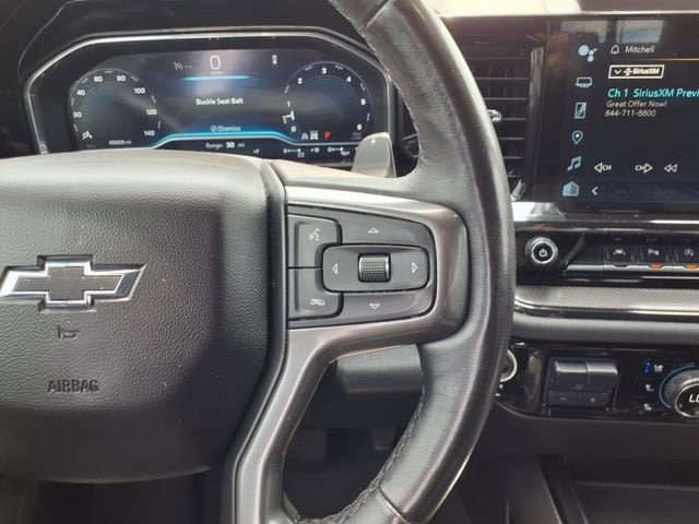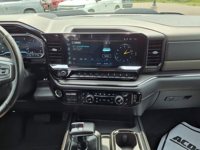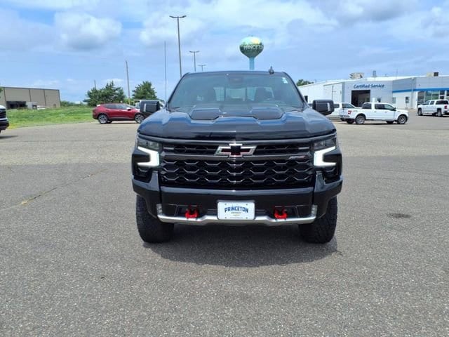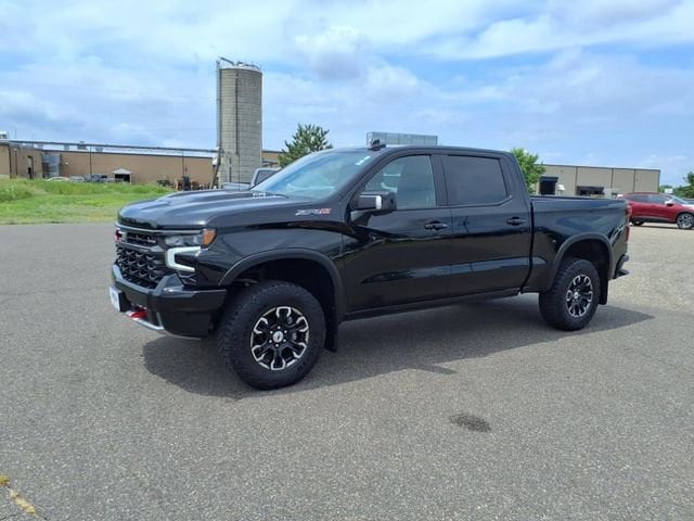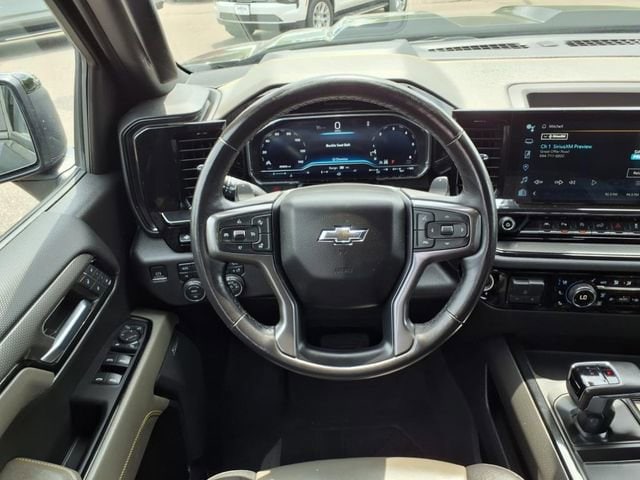 Black 2023 Chevrolet Silverado 1500 ZR2 4WD 10-Speed Automatic EcoTec3 6.2L V8 10-Speed Automatic, 4WD, Jet Black/Graystone Leather, 10-Way Power Driver Seat w/Lumbar, 10-Way Power Passenger Seat Adjuster w/Lumbar, 12.3 Multicolor Reconfigurable Digital Display, 120-Volt Bed Mounted Power Outlet, 120-Volt Instrument Panel Power Outlet, 15 Diagonal Multicolor Head-Up Display, 170 Amp Alternator, 2 USB Data Ports, 2nd Row Heated Outboard Seats, Adaptive Cruise Control, All-Weather Floor Liner (LPO), Auto-Dimming Inside Rear-View Mirror, Auto-Locking Rear Differential, Bed View Camera, Bluetooth® For Phone, Chevrolet Connected Access Capable, Chevytec Spray-On Black Bedliner, Color-Keyed Carpeting Floor Covering, Compass, Deep-Tinted Glass, Driver door bin, Driver Memory, Driver vanity mirror, Dual Exhaust, Dual Rear USB Ports (Charge Only), Electric Rear-Window Defogger, Electrical Steering Column Lock, Electronic Cruise Control, EZ Lift Power Lock & Release Tailgate, Floor Mounted Center Console, Following Distance Indicator, Forward Collision Alert, Front Bucket Seats, Front Center Armrest, Front LED Fog Lamps, Front Pedestrian Braking, Front Rainsensing Wipers, Front reading lights, Garage door transmitter, HD Surround Vision, Heated Driver & Front Outboard Passenger Seats, Heated front seats, Heated rear seats, Heated Steering Wheel, Heated steering wheel, Heavy-Duty Air Filter, High Gloss Black Mirror Caps, Hill Descent Control, Hitch Guidance, Hitch Guidance w/Hitch View, Illuminated entry, Integrated Trailer Brake Controller, Keyless Open & Start, Lane Keep Assist w/Lane Departure Warning, LED Cargo Area Lighting, Manual Tilt/Telescoping Steering Column, OnStar & Chevrolet Connected Services Capable, Outside Heated Power-Adjustable Mirrors, Outside temperature display, Overhead console, Panic alarm, Passenger door bin, Passenger vanity mirror, Perforated Leather Seat Trim, Performance Red Recovery Hooks, Perimeter Lighting, Power Front Passenger Windows w/Express Up/Down, Power Front Windows w/Driver Express Up/Down, Power passenger seat, Power Rear Windows w/Express Down, Power Sliding Rear Window w/Rear Defogger, Power Tilt & Telescoping Steering Column, Preferred Equipment Group 3LT, Rear Camera Mirror, Rear Cross Traffic Alert-Braking, Rear Park Assist, Rear Pedestrian Alert, Rear reading lights, Rear seat center armrest, Rear Wheelhouse Liners, Remote Vehicle Starter System, Safety Alert Seat, Security system, SiriusXM w/360L, Speed control, Split folding rear seat, Standard Tailgate, Steering Wheel Audio Controls, Tachometer, Technology Package, Telescoping steering wheel, Theft Deterrent System (Unauthorized Entry), Tilt steering wheel, Trailer Camera Provisions, Trailer Side Blind Zone Alert, Trailering App, Trailering Package, Trip computer, Universal Home Remote, Up-Level Rear Seat w/Storage Package, Ventilated Driver & Front Passenger Seats, Ventilated front seats, Voltmeter, Wi-Fi Hot Spot Capable, Wireless Charging, Wireless Phone Projection, Wrapped Steering Wheel, ZR2 Suspension Package.