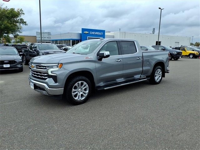 Sterling Gray Metallic 2024 Chevrolet Silverado 1500 LTZ 4WD 10-Speed Automatic EcoTec3 5.3L V8 10-Speed Automatic, 4WD, Black Leather.