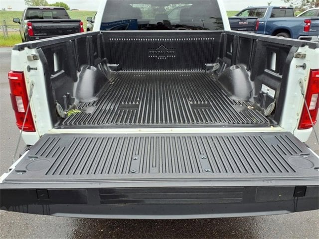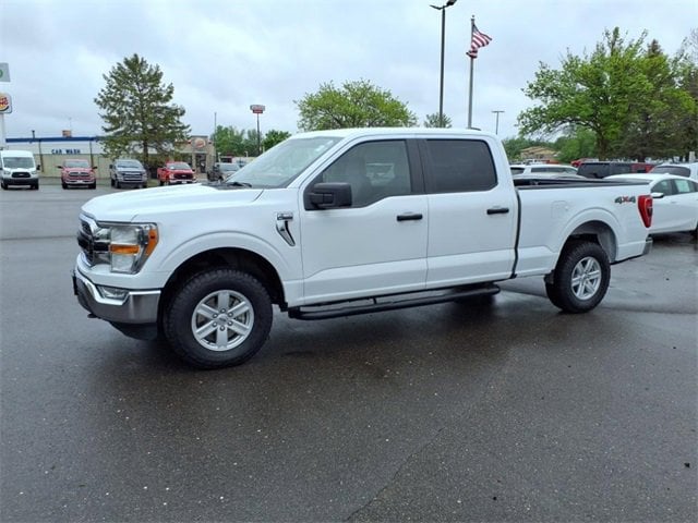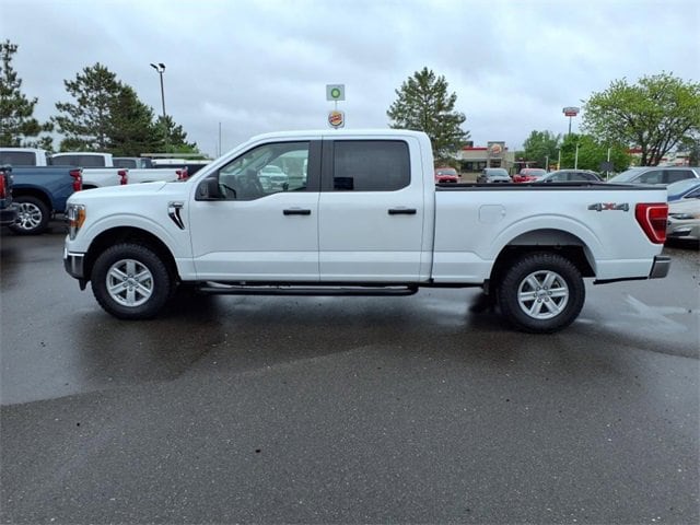 White 2022 Ford F-150 XLT 4WD 10-Speed Automatic 5.0L V8 4WD, ABS brakes, Alloy wheels, Auto High-beam Headlights, Brake assist, Bumpers: chrome, Class IV Trailer Hitch Receiver, Cloth 40/20/40 Front Seat, Compass, Delay-off headlights, Driver door bin, Driver vanity mirror, Dual front impact airbags, Dual front side impact airbags, Electronic Stability Control, Emergency communication system: SYNC 4 911 Assist, Equipment Group 300A Standard, Front Center Armrest w/Storage, Front fog lights, Front reading lights, Front wheel independent suspension, Fully automatic headlights, Heated door mirrors, Illuminated entry, Integrated Trailer Brake Controller, Low tire pressure warning, Occupant sensing airbag, Outside temperature display, Overhead airbag, Overhead console, Panic alarm, Passenger door bin, Passenger vanity mirror, Power door mirrors, Pro Trailer Backup Assist, Rear reading lights, Rear step bumper, Remote keyless entry, Security system, Speed control, Split folding rear seat, SYNC 4, Tachometer, Telescoping steering wheel, Tilt steering wheel, Traction control, Trailer Tow Package, Trip computer, Variably intermittent wipers, Voltmeter, Wheels: 17 Silver Painted Aluminum.