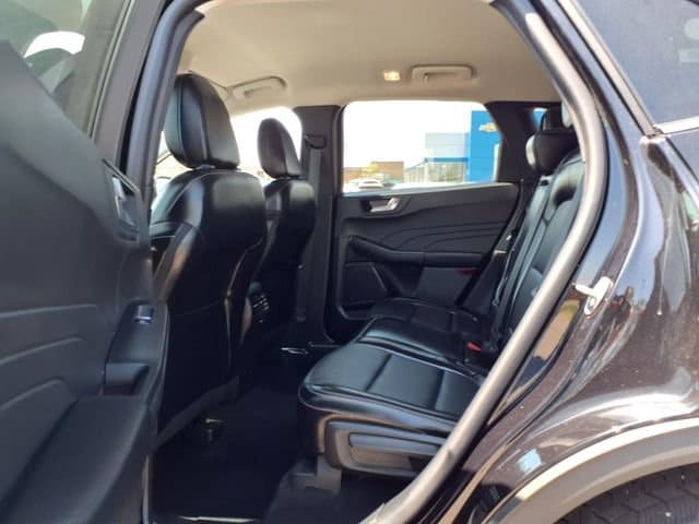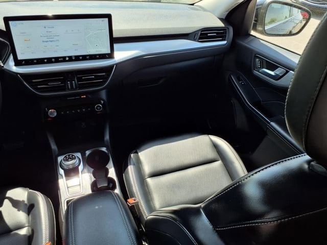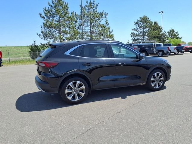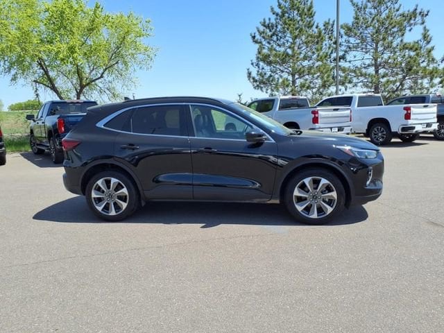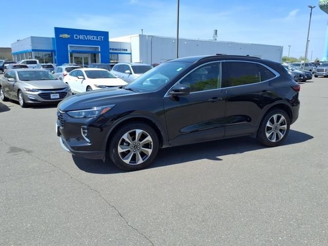 Black 2023 Ford Escape Platinum AWD 8-Speed Automatic EcoBoost 2.0L I4 GTDi DOHC Turbocharged VCT AWD, 4-Wheel Disc Brakes, Auto High-beam Headlights, Compass, Driver door bin, Driver vanity mirror, Electronic Stability Control, Exterior Parking Camera Rear, Front Bucket Seats, Front Center Armrest, Front reading lights, Garage door transmitter, Heated ActiveX Trimmed Front Sport Contour Bucket Seats, Heated front seats, Heated steering wheel, Illuminated entry, Navigation system: Connected Navigation, Neutral Towing Capability, Outside temperature display, Overhead console, Panic alarm, Passenger door bin, Pedestrian Alert Sounder, Power Liftgate, Power passenger seat, Rear reading lights, Split folding rear seat, SYNC 4 w/Enhanced Voice Recognition, Telescoping steering wheel, Tilt steering wheel, Trip computer.