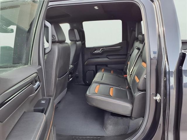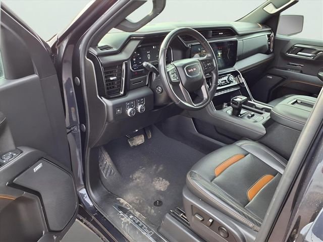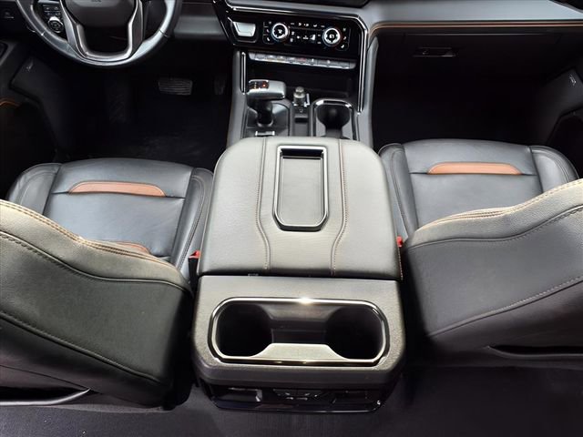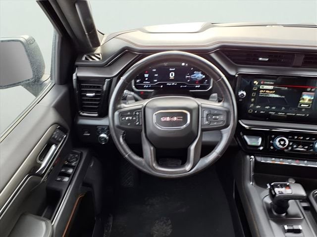 Titanium 2022 GMC Sierra 1500 AT4 4WD 10-Speed Automatic EcoTec3 6.2L V8 10-Speed Automatic, 4WD, Jet Black With Kalahari Accents Leather, 120-Volt Bed Mounted Power Outlet, 120-Volt Instrument Panel Power Outlet, 2 USB Ports, 4-Wheel Disc Brakes, 7 Speakers, ABS brakes, Air Conditioning, AM/FM radio: SiriusXM with 360L, Auto High-beam Headlights, Auto-Locking Rear Differential, Automatic temperature control, Brake assist, Delay-off headlights, Driver Memory, Dual front impact airbags, Dual front side impact airbags, Electric Rear-Window Defogger, Electrical Steering Column Lock, Electronic Stability Control, Emergency communication system: OnStar and GMC Connected Services capable, Front anti-roll bar, Front dual zone A/C, Front fog lights, Front wheel independent suspension, Fully automatic headlights, Hill Descent Control, Hitch Guidance, Keyless Open & Start, Low tire pressure warning, Memory seat, Navigation System, Occupant sensing airbag, Off-Road Suspension, Overhead airbag, Panic alarm, Perimeter Lighting, Power Door Locks, Power driver seat, Power Front Passenger Windows w/Express Up/Down, Power Front Windows w/Driver Express Up/Down, Power Rake & Telescoping Steering Column, Power Rear Windows w/Express Down, Power steering, Power windows, Premium audio system: GMC Infotainment System, Premium Bose 7-Speaker Sound System, Push Button Start, Radio data system, Radio: Premium GMC Infotainment Audio System, Rear window defroster, Remote keyless entry, Remote Vehicle Starter System, Security system, SiriusXM w/360L, Speed-sensing steering, Steering Wheel Audio Controls, Steering wheel mounted audio controls, Theft Deterrent System (Unauthorized Entry), Traction control, Trailering Package, Wireless Phone Projection.