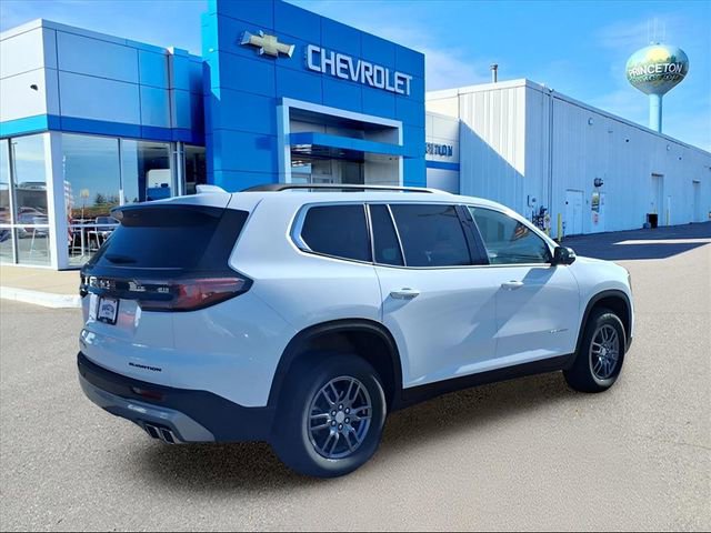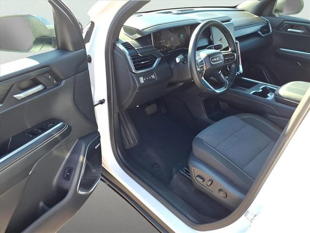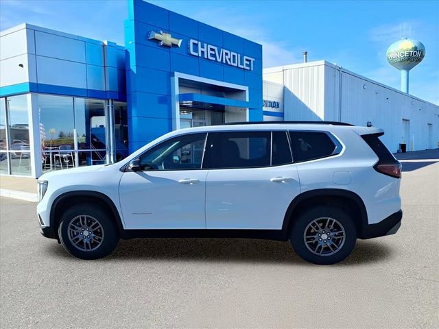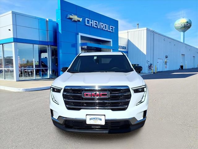 Summit White 2025 GMC Acadia Elevation AWD 8-Speed Automatic 2.5L DOHC AWD, After Dark Cloth, 12 Speakers, 18 x 7.5 Aluminum Wheels, 2-Way Driver Power Lumbar Seat Adjuster, 3.49 Final Drive Axle Ratio, 3rd row seats: split-bench, 4-Way Manual Front Passenger Seat Adjuster, 4-Wheel Disc Brakes, 8-Passenger Seating (2-3-3 Seating Configuration), 8-Way Power Driver Seat Adjuster, ABS brakes, Air Conditioning, Alloy wheels, AM/FM radio: SiriusXM with 360L, Apple CarPlay/Android Auto, Auto High-beam Headlights, Auto-dimming Rear-View mirror, Automatic temperature control, Bodyside moldings, Bose Premium 12-Speaker System w/Sub-Woofer, Brake assist, Bumpers: body-color, Cloth Seat Trim, Compass, Delay-off headlights, Driver door bin, Driver vanity mirror, Dual front impact airbags, Dual front side impact airbags, Electronic Stability Control, Emergency communication system: OnStar Services capable, Exterior Parking Camera Rear, Four wheel independent suspension, Front anti-roll bar, Front Bucket Seats, Front Center Armrest, Front dual zone A/C, Front fog lights, Front License Plate Bracket, Front reading lights, Fully automatic headlights, Heated door mirrors, Heated Driver & Front Passenger Seats, Heated front seats, Heated steering wheel, Illuminated entry, Leather steering wheel, Low tire pressure warning, Navigation System, Occupant sensing airbag, Outside temperature display, Overhead airbag, Overhead console, Panic alarm, Passenger door bin, Passenger vanity mirror, Power door mirrors, Power driver seat, Power Liftgate, Power steering, Power windows, Preferred Equipment Group 4SD, Radio data system, Radio: 15 Premium GMC Infotainment System, Rear air conditioning, Rear anti-roll bar, Rear reading lights, Rear seat center armrest, Rear side impact airbag, Rear window defroster, Rear window wiper, Remote keyless entry, Security system, SiriusXM w/360L, Speed control, Speed-sensing steering, Split folding rear seat, Spoiler, Sport steering wheel, Steering wheel mounted audio controls, Tachometer, Telescoping steering wheel, Tilt steering wheel, Traction control, Trip computer, Turn signal indicator mirrors, Variably intermittent wipers, Voltmeter.