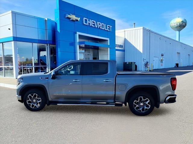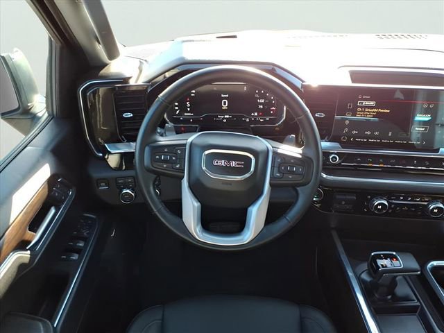 Sterling Metallic 2025 GMC Sierra 1500 SLT 4WD 10-Speed Automatic 3.0L I6 10-Speed Automatic, 4WD, Black Leather.